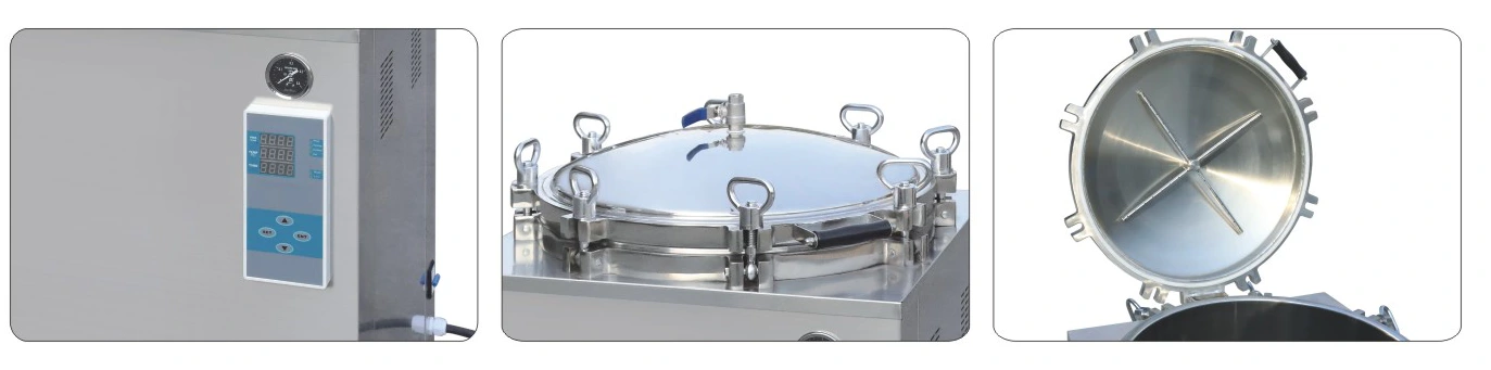 L'autoclave a contropressione è un tipo di apparecchiatura di sterilizzazione controllata da microcomputer di medie dimensioni, riempie direttamente l'acqua nella camera di sterilizzazione per il riscaldamento elettrico per generare vapore ad alta pressione come richiesto dal ciclo di sterilizzazione, quindi l'unità procede alla sterilizzazione degli articoli, la temperatura dell'acqua si raffredda rapidamente in 3 minuti mediante l'iniezione di aria compressa collegata esternamente al termine del ciclo e la temperatura degli articoli nella camera potrebbe scendere a 30~40 ℃. L'unità è controllata da programma, ci sono due opzioni operative per scegliendo: disinfezione mediante ebollizione la cui temperatura di sterilizzazione è inferiore o uguale a 100 ℃. L'unità è dotata di protezione da sovraccarico e funzione di allarme acustico dopo la sterilizzazione, facile e comoda da usare, sicura e affidabile. È applicabile alla disinfezione e sterilizzazione di imballaggi alimentari, utensili, strumenti e altri articoli. È particolarmente adatta per test di sterilità negli istituti di ricerca alimentare.