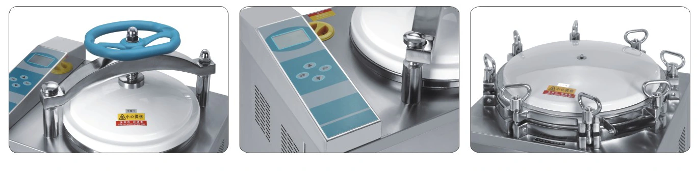 Gli sterilizzatori a vapore a pressione verticale sono assemblati con sistema di riscaldamento, sistema controllato da microcomputer, sistema di protezione da surriscaldamento e sovrapressione, che sono affidabili per gli effetti di sterilizzazione, praticità di funzionamento e risparmio energetico. Sono adatti per sterilizzare attrezzature, medicazioni, contenitori, liquidi, terreno di coltura, rifiuti, ecc. negli ospedali, centri di controllo delle malattie, laboratori biologici P2 e stazioni del sangue, ecc. di istituti di ricerca scientifica.